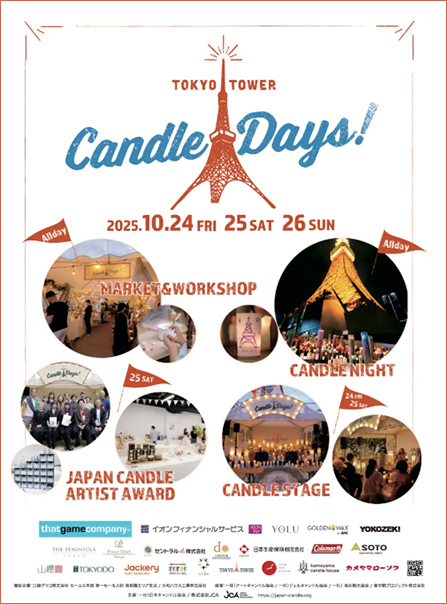 「TOKYO TOWER CANDLE DAYS 2025」は、国内外のハンドメイドキャンドル制作者No.1を決める「JAPAN CANDLE ARTIST AWARD 2025」、東京タワーのライトアップとキャンドル灯りのコラボレーションが楽しめる「東京タワーキャンドルナイト」、